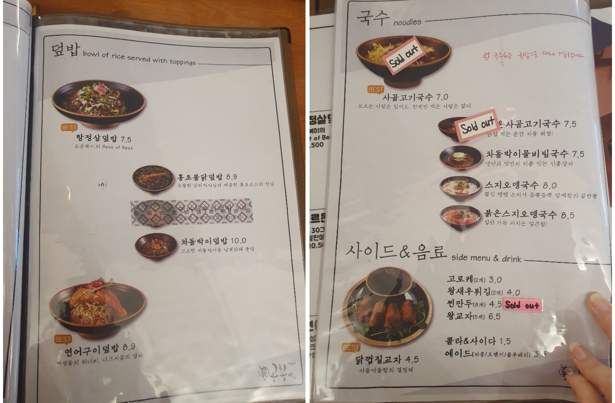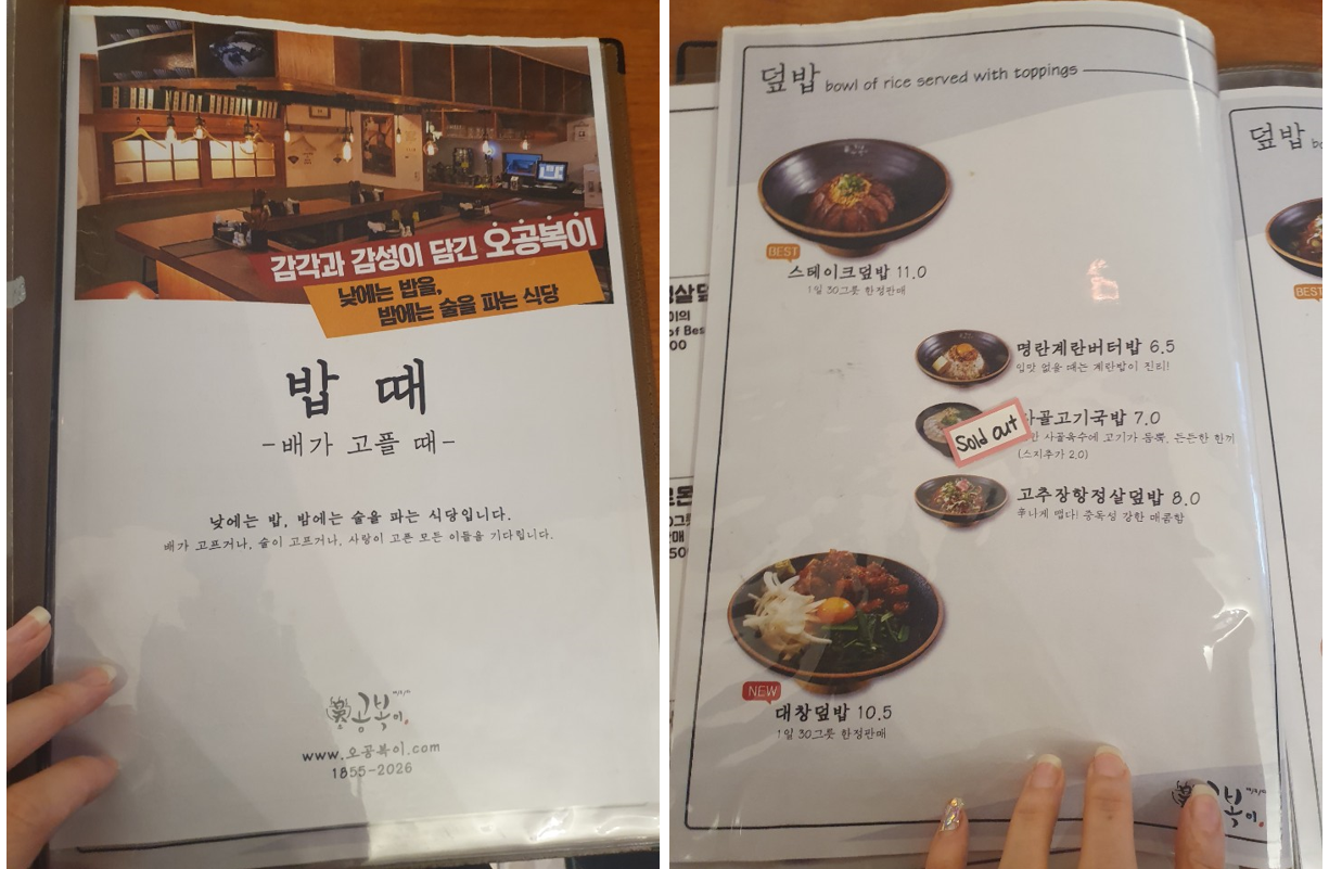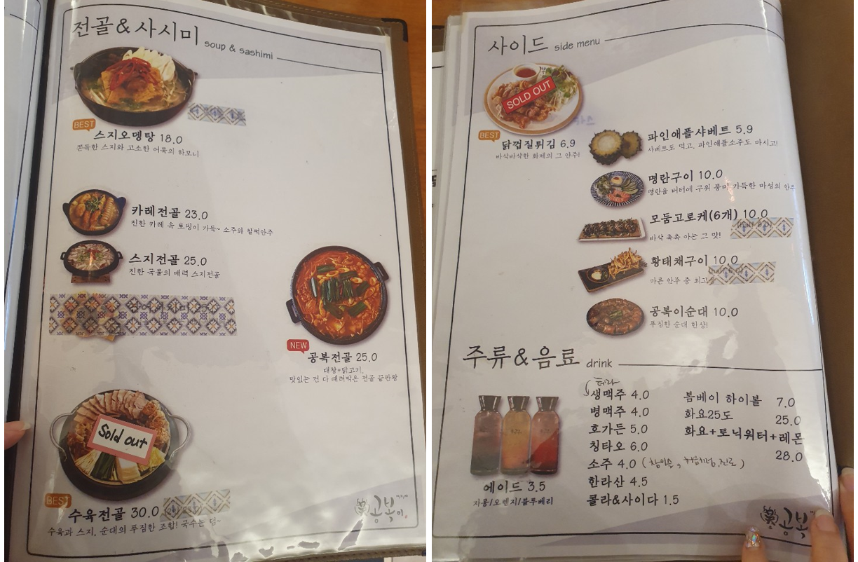 우리 그럼 이제 메뉴 한번 봐볼까요?